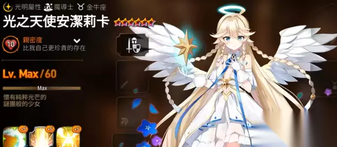 算是一个很好用的前排奶妈,当然仅限于PVE。 4、光之天使安洁丽卡 光属性的水奶是目前最好用的PVP奶妈辅助之一,无论是从强度上来看,亦或者是在光凭颜值上来看,这名角色都是游戏中非常值得培养的奶妈角色。在打噩梦迷宫以及世界竞技场方面,公会战方面都有着极为不错的表现,可以说是四星t0级别。尽管打PVE的时候效果不明显,但一旦上了PVP,那么就是最好用的反核组件之一。