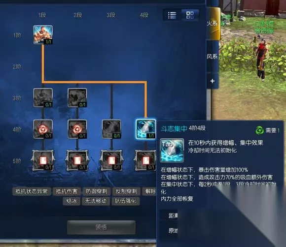 斗志昂扬可给队友提供buff 集中是个人增幅 配合冲拳可以打高伤害 推荐用集中。