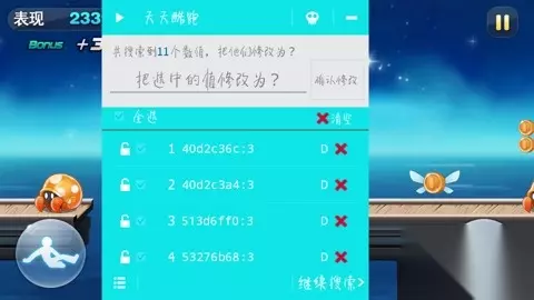 →如果如图所示 未出现一个数据修改列表就出现了那么点击继续搜索 继续吃金币继续修改数值(一定注意不能算错)