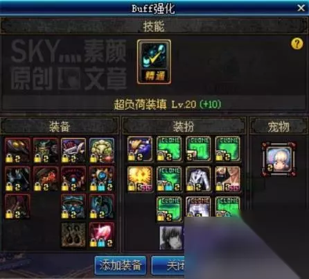[超负荷装填]的精通上限等级为20级,可通过[潜伏六]、[裂魂气息散件]、[屠龙之首]等装备来获得额外的属性加成。首先对任何阶段的玩家来说,[潜伏六]都是必要的。在达成潜伏六之后,再根据自身的宝珠、白金徽章拥有情况,用[裂魂气息散件]或是[等级加成装备]来填充剩余的装备部位。