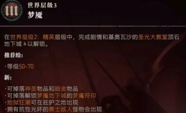 4、世界层级3相当于其他游戏的困难难度,建议玩家有一定装备和技巧后再来挑战。