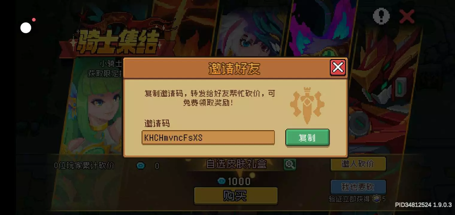 复制整段文本到《元气骑士前传》游戏内参与活动,助力好友领取蓝宝石与皮肤!邀请码#cGHGgsKKny