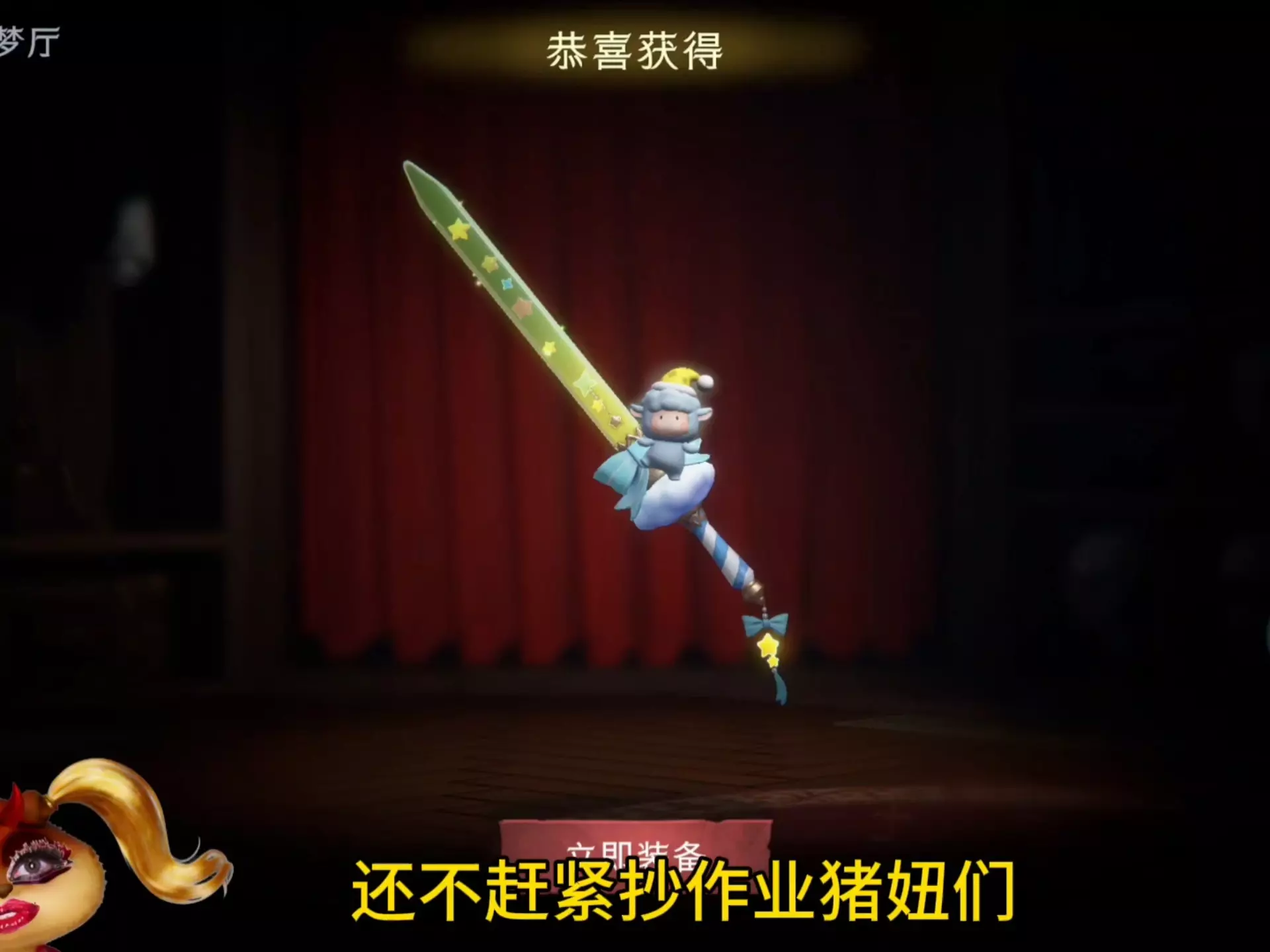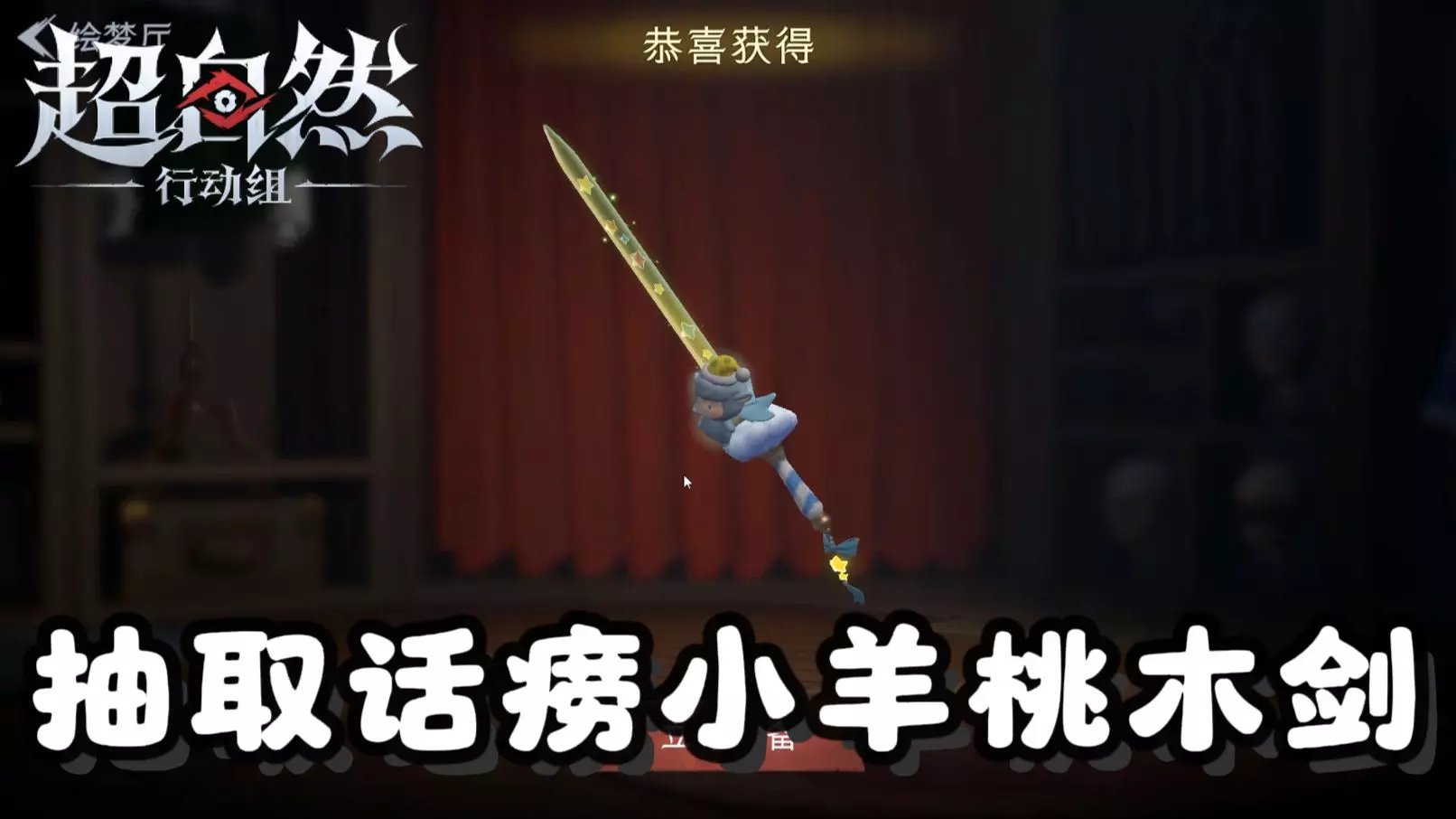 这是游戏《超自然》的小羊波德莱尔联动活动打卡内容,展示了联动的桃木剑皮肤小羊波德莱尔剑的抽取活动,6次内必得,首抽仅10金砖,还展示了奖池内容、皮肤实战效果,博主调侃抽取结果和配乐。