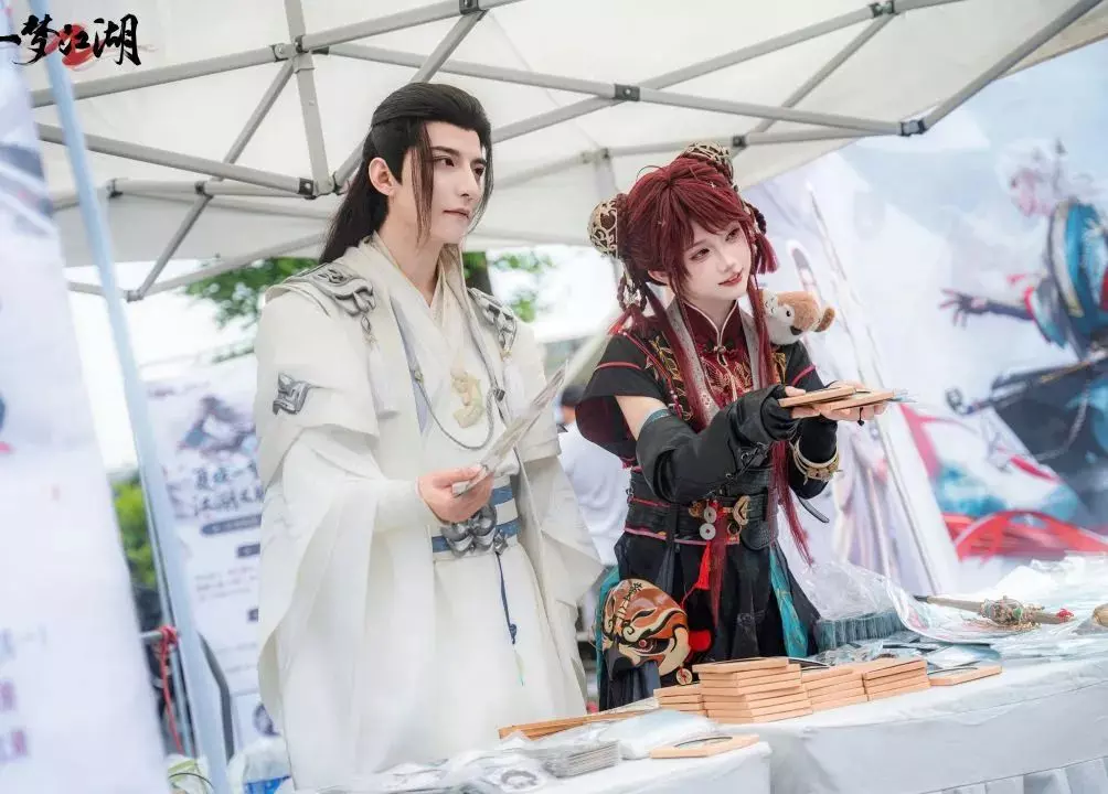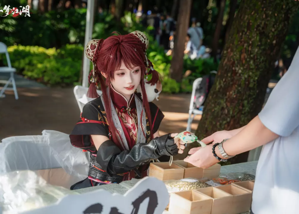 踏入现场,浓郁的武侠气息扑面而来——巨大的龙门牌匾巍然矗立,仿佛一道跨越现实与江湖的界碑;龙门掌门“天下无敌”傲立树下,梦崽一袭门派服饰,笑意盈盈地迎接每一位少侠的到来~