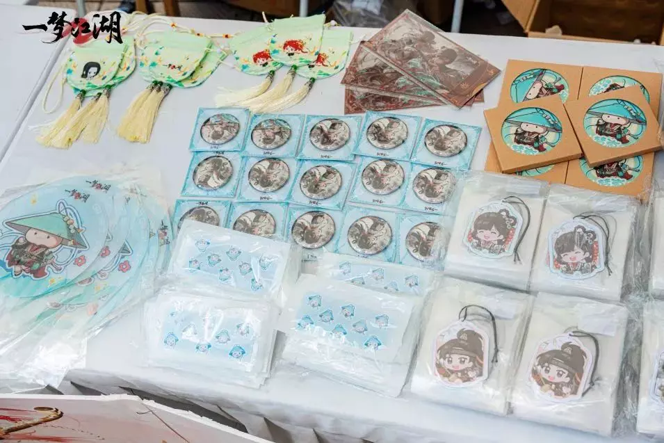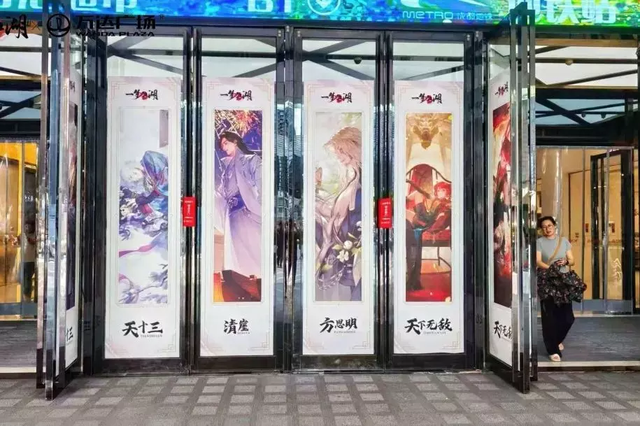 商场大屏轮播新门派龙门画面,虚拟与现实的界限在此模糊,少侠们仿佛一脚踏入了蜀中武侠的绮梦。现场周边物料多多,少侠们收好江湖好礼,将这份江湖记忆随身珍藏。