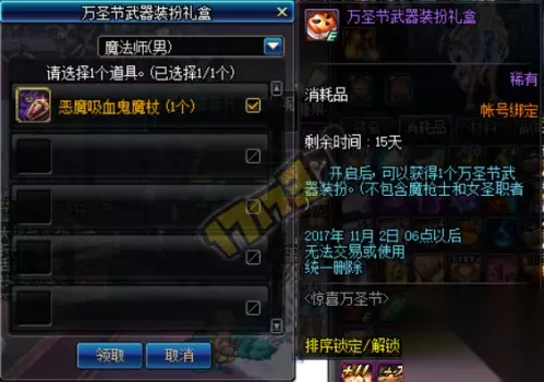 除了赛丽亚房间会被大装修外,玩家还会获得万圣节武器装扮礼盒作为奖励。跟着小编一起来看看万圣节的武器装扮吧。 打开即可获得对应职业万圣节武器装扮,不过魔枪士和小姐姐不能使用哦。