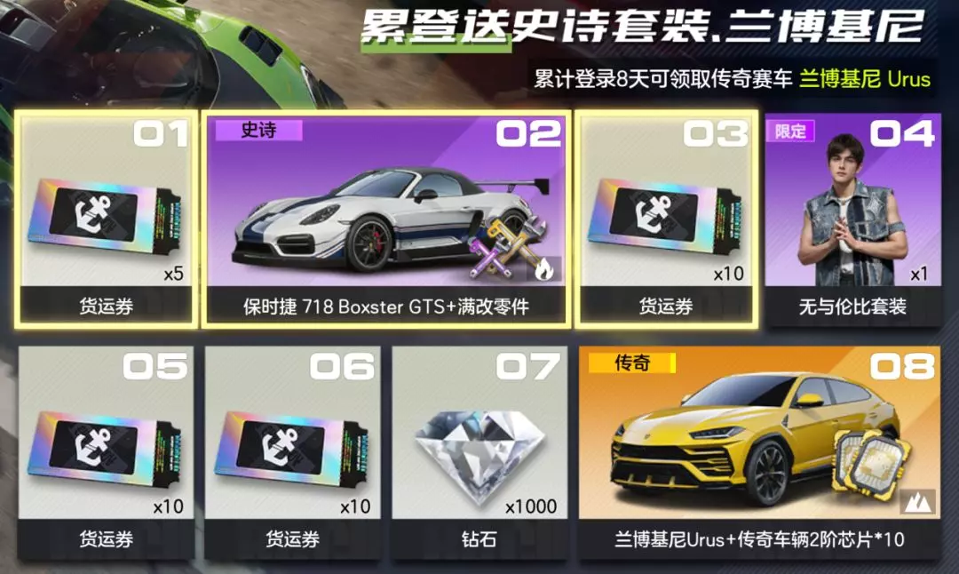 第8天:兰博基尼 Urus、传奇车辆2阶芯片*10