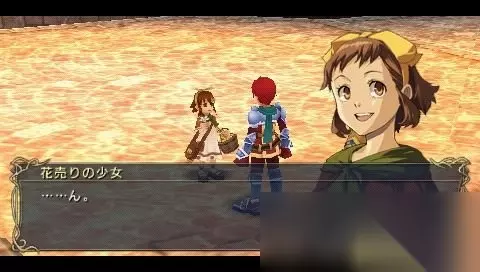 二人在市内闲逛以了解风土民情。来到街中央的广场,同水池边买香草的女孩(缇雅)对话,缇雅认出了亚特鲁身上佩戴着的刚买的花,并对二人说卖花的孩子一定很高兴。