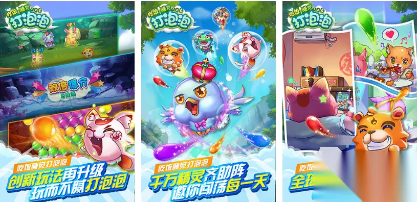 泡泡粉碎是款与气球相关的消除互动类游戏,横竖排列气球进行消除的设定很有魅力,各种花色的可爱泡泡消除特效也很华丽,游戏并没有任何道具加持需要大家自由闯关,点触移动气球进行消除的操作也比较特殊,愉快音效和多彩的背景呈现提供视听享受,粉碎小气球带来的消除快感也令人血脉喷张。 》》》》》#泡泡粉碎#《《《《《 4、《打泡泡》