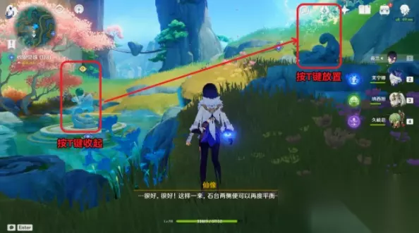 (3)根据「慢悠悠仙像」的提示,将其归位到仙像台座即可(按T收起,长按E放置)