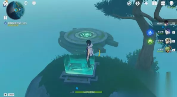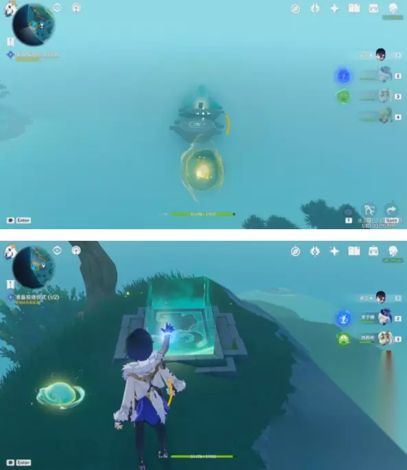 (2)将「慢悠悠仙像」移到升起的浮空石台上,此时游戏动画提示另—侧浮空石台的鲤鱼石雕封印被解除