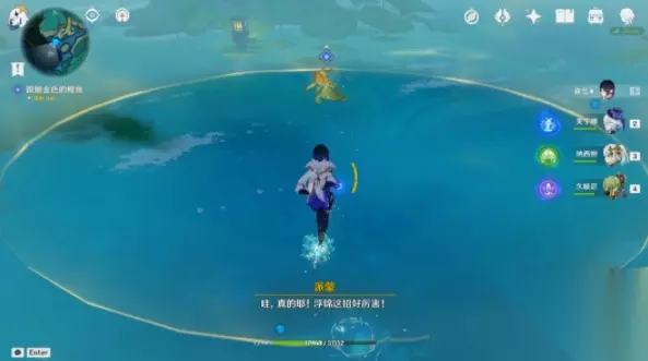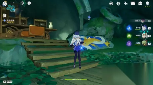 4、继续跟随金色的鲤鱼走(注意:此处的水面可以直接行走);