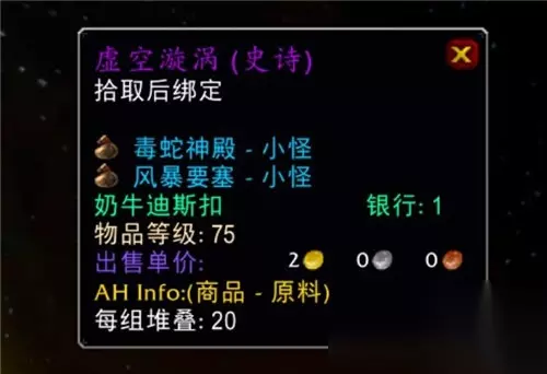 世界BOSS其实掉落不少好东西的,比如风暴之爪,就比卡拉赞匕首要优秀一些,以后新人满级可以去AH直接购入这些装备了,这对快速武装小号非常有帮助。当然第一个CD风暴之爪肯定不会便宜,少说也要上千金。 第四条改动涉及一些材料 P4阶段源生虚空和虚空漩涡会取消灵魂绑定,也就是说,当玩家拾取源生虚空和虚空漩涡后是可以交易的,想一想P2阶段有多少团长因为虚空漩涡分错而自掏腰包的,P4阶段以后再也不用担心这个问题了。另外源生虚空和虚空漩涡可以使用牌子在基厄拉斯处购买,同样是可以自由交易的,这也算是小号的福利吧。