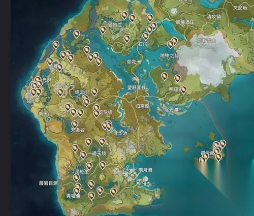 原神石珀采集地点 石珀采集总览图:分布在层岩巨渊地带。