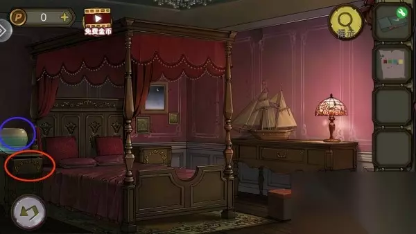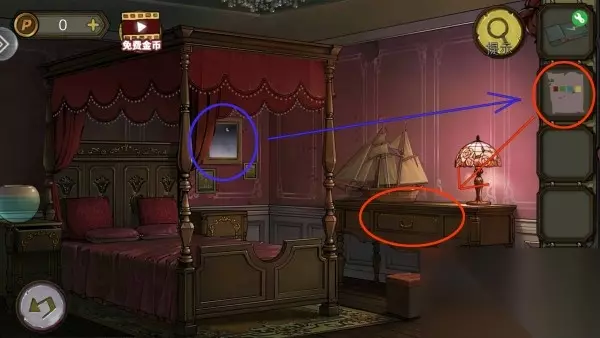 2、然后根据墙画上的英文和纸条上的颜色,打开柜子拿到圆片,桌上拿到铅笔。 3、玩家用圆片打开右卧的盒子,拿到半块宝石。 4、柜子解谜思路:墙画上的英文填纸条的4个色块上,再对应密码锁上的颜色。