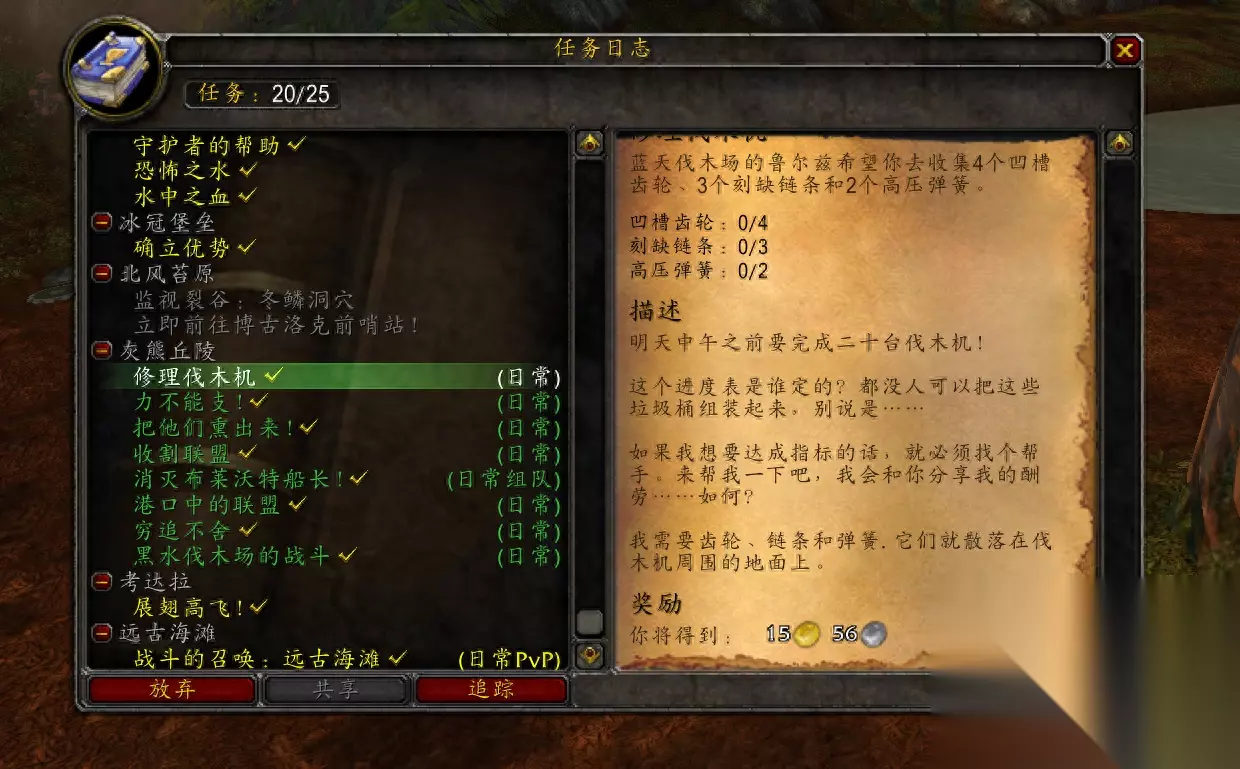 灰熊丘陵的9个日常任务,小编做过测试,做完9个日常任务花费43分钟。当然,现在做完9个日常任务并没有成就,也不会奖励成就坐骑,玩家需要等到P2阶段才能获得成就和坐骑。