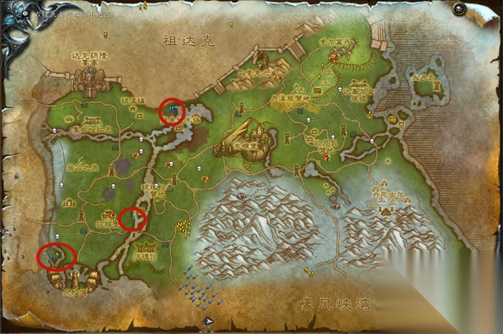 日常任务是WLK版本最主要的赚金币途径,诺森德每一块地图上都有很多日常任务,许多玩家闲着没事都会选择清理日常任务,不用花费太多时间就能获得大量金币。灰熊丘陵的地图并不大,却有9个日常任务,下图红圈标注的地方就是领取日常任务的地方,而小编说到的成就龙和这9个日常任务有关系。