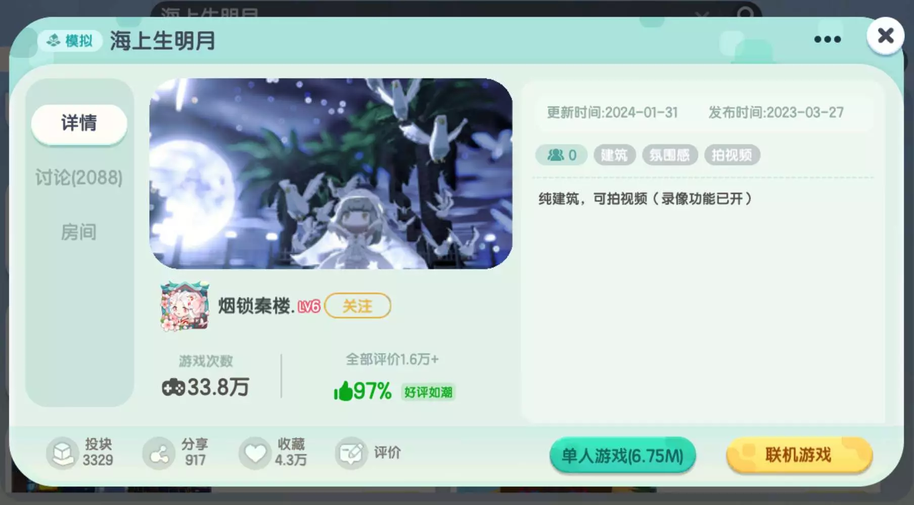 ③-🍭:豪华别墅更是地图中的亮点。书房内书香悠悠,透过窗户便能览尽海景,于此处静读,时光都变得温柔。登上观景台,视野瞬间开阔,整个地图的美景尽收眼底,明月高悬,大海无垠,仿若置身于仙境之中。别墅的客房也十分温馨,伴着海浪声入眠,是何等的舒适与美(◍'౪`◍)❤🌆
