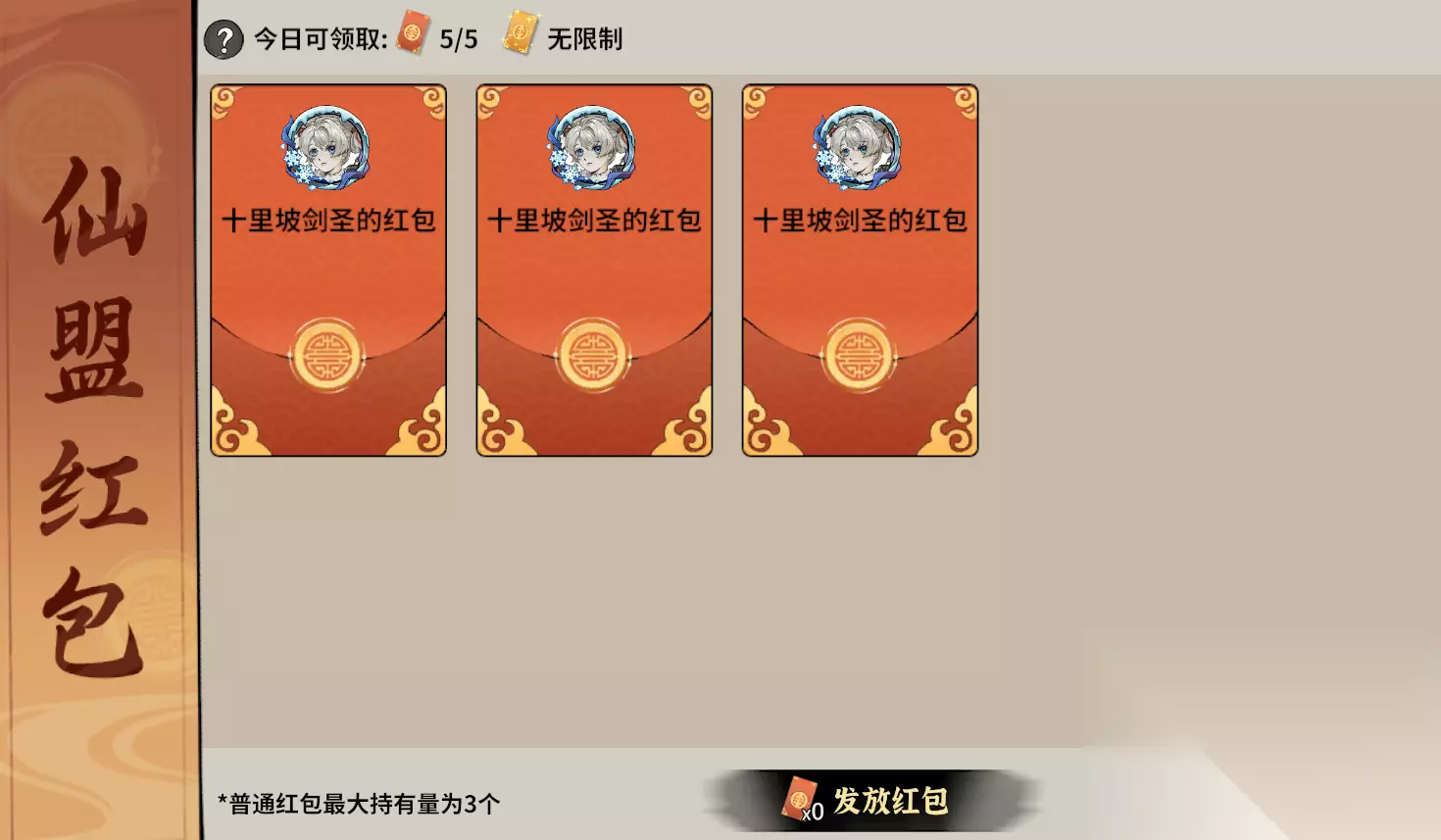 浇灌后道友们可以获得仙盟的礼包,玩家可以在仙盟内发放免费的红包与盟内好友们分享。