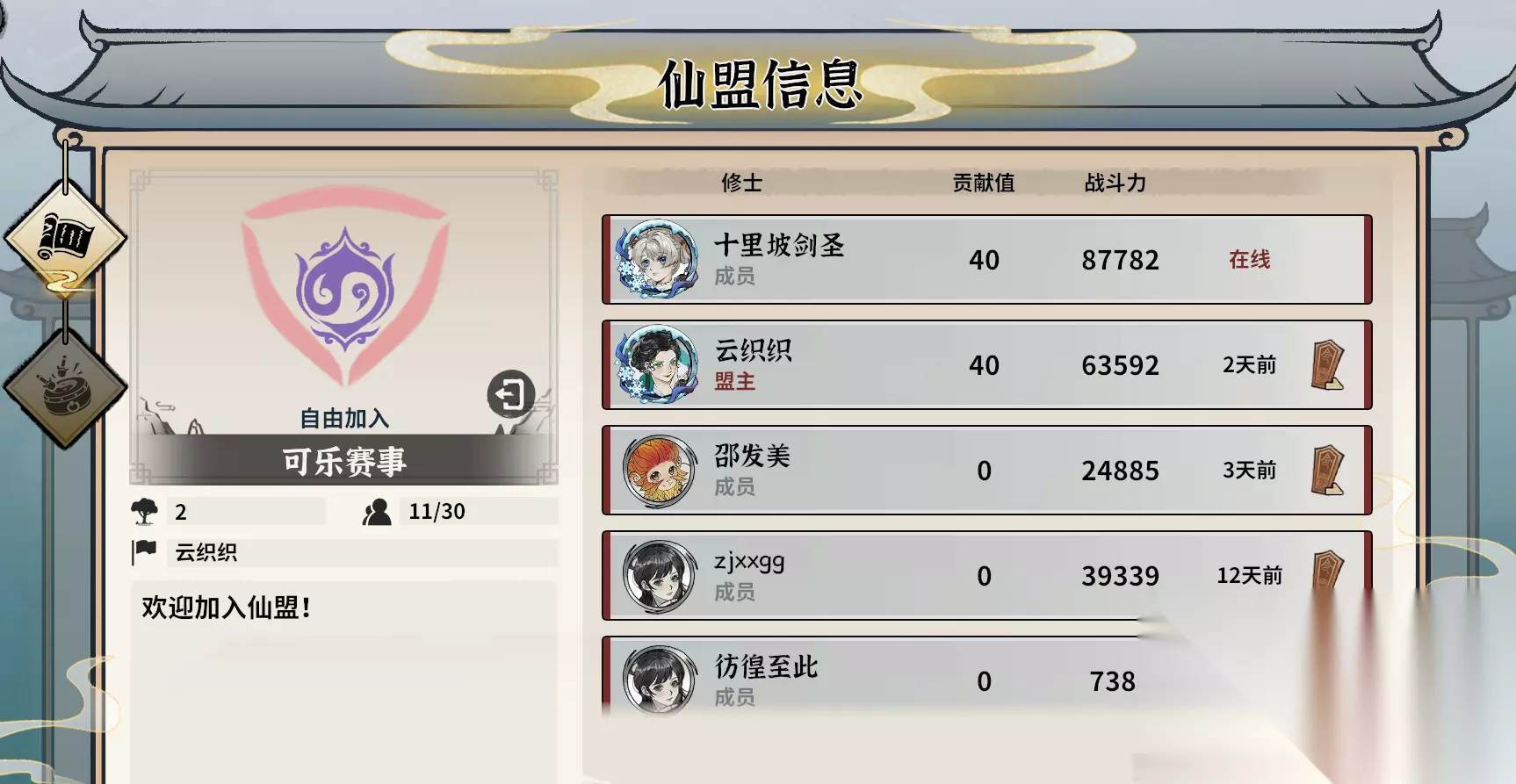 道友们还可以在炉鼎旁边看到一个榜单牌楼,这里说明了仙盟的各类信息。