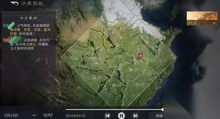 6、沙盘回放 右上角“沙盘回放”会记录区服每天发生的事件,如同盟攻占城池、抽卡欧皇等。