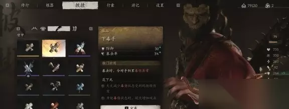 黑手道人、臂甲下毒手 在第四回【盘丝岭-盘丝洞-碎玉池】触发与BOSS黑手道人的第一次战斗期间,打掉黑手道人背后的手臂再击杀黑手道人,就能获得他的臂甲【下毒手】。否则在直接击杀黑手道人后将无法获得,暂时没有补救方法,错过的话只能二周目收集。 目前测试最好在第四回【盘丝洞-碎玉池】触发的与【黑手道人】的第一次BOSS战期间获得此臂甲,因为第二次遇到他时他可能不会使用戳地技能,打掉手臂的限制条件会比较多,难度比第一次战斗期间相对要大一些。