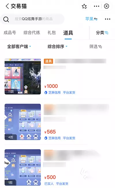2、道具和礼包快捷交易。在交易猫的QQ炫舞专区中,买家们能够进行服饰、点券礼包、进阶道具、永久装扮等物品交易。交易猫拥有各种类型道具,助力玩家们快速成长。