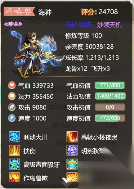 青龙 青龙是大话手游中非常好用的一个极品召唤兽,法力初值堪称大话第一,速度初值和画中仙相同,但他是目前游戏中唯一一个秒3的召唤兽,战略意义自是不用多言。