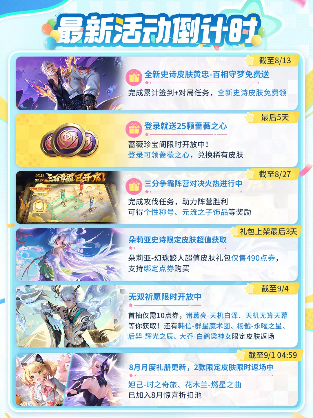 【8月月度礼册更新】妲己-时之奇旅、花木兰-燃星之曲加入惊喜折扣池!