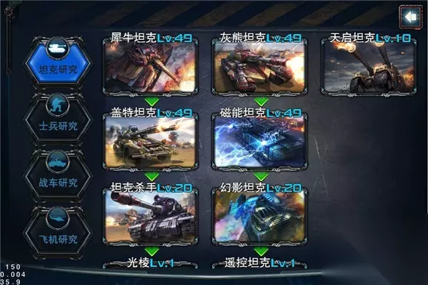 在这种相互克制关系下,如何才能打造王牌之师呢?这就需要改装工厂、科研中心来助阵了! 火控系统、炮口制退器、反应装甲.......使用不同的配件可以给坦克攻击和防御不同的加成!同时改装工厂可以利用铁矿、石油、铅矿等资源提升坦克属性,而科研中心,更是更是提升武力值重中之重!
