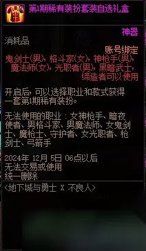 dnf第1期稀有装扮异色款外观见上图,可以通过金秋礼包活动获得的装扮凭证在NPC处兑换得到 游戏介绍: 1、DNF(Dungeon and Fighter)是一款韩国网络游戏公司NEOPLE开发的免费角色扮演2D游戏,由三星电子发行,并于2005年8月在韩国正式发布。中国则由腾讯游戏代理发行。 2、DNF是一款以快节奏的格斗为特色,以任务引导角色成长为中心,结合副本、PVP、PVE为辅,与其他网络游戏同样具有装备与等级的改变,并拥有共500多种装备道具。 3、每个人物有10个道具装备位置,在游戏中可以允许最多4个玩家进行组队挑战关卡,同样也可以进行4对4的PK。 4、DNF(地下城与勇士)中有许多角色供玩家选择。这些角色分为多个职业, 包括男鬼剑士(如剑影、阿修罗、鬼泣、狂战士、剑魂) 女鬼剑士(如驭剑士、流浪武士、暗殿骑士、契魔者、刃影) 男格斗家(如散打、街霸、气功师、柔道家) 女格斗家(如散打、街霸、气功师、柔道家) 男神枪手(如合金战士、漫游枪手、枪炮师、机械师) 女神枪手(如弹药专家、漫游枪手、枪炮师、机械师)等等。