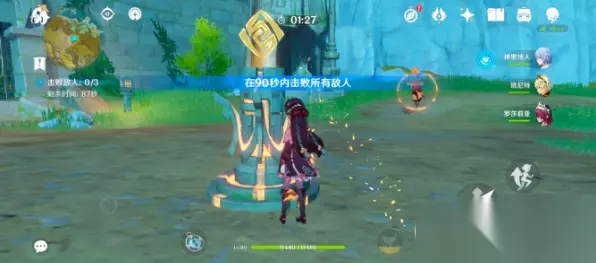 ⑤用岩元素的元素技能抨击元素柱,完成挑战,打开事迹,事迹在柱子正对面。