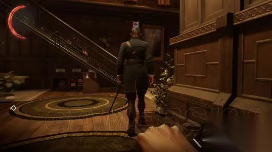 进入胡同右拐就可以看到一扇门,打开门,进入报社。这时候注意,通常会有一个敌人在里面,小心进入解决掉这名敌人。 然后顺着楼梯走到顶楼,可以听到士兵威胁报社记者,要求撰写关于新女皇的报道。记者拒绝士兵的要求。提前接近解决士兵,否则记者会被士兵杀害。