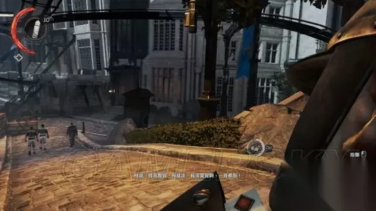 方案一:走银行路线从这里进入胡同。需要注意的是,在胡同内,有两个市民在谈话,前面有一个敌人,如果要掐晕那个敌人后,就不要让市民看到,否则他们尖叫会引来士兵。