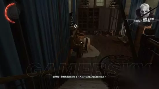 2:消灭莫提默.蘭姆西,取得皇室图章。离开阿列克西对扎根,这里有2个敌人,稍等一会另外一个敌人就会离开。潜行掐晕2名士兵。取得皇家寝室的钥匙。
