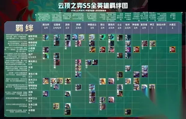 云顶之弈最新的羁绊和英雄内容曝光,版本再次来到了一个全新的玩法中,更多英雄联盟峡谷中的英雄来到我们的云顶之弈棋牌中,全新的羁绊体系,各种独特的玩法,去进行不同的s5赛季的对战,小编为玩家们带来了云顶之弈s5最新的羁绊和英雄,赶紧来看看吧。 职业羁绊