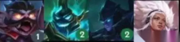 黑夜使者 [黑夜使者]会在生命值首次低于50%时获得一个持续衰减的护盾。当护盾消失时,他们会造成35%额外伤害。(有点像钢铁羁绊,不过要盾没了才有额外伤害,有点鸡肋,不过配合复活甲应该有奇效) 英雄:弗拉基米尔(1),瑟庄妮(2),李青(3),莫甘娜(3),亚索(3),厄斐琉斯(4),黛安娜(4),德莱厄斯(5)