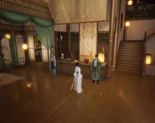 2、前往长庆楼一楼找npc元文宣听望海潮。 与书生聊聊望海潮词曲。