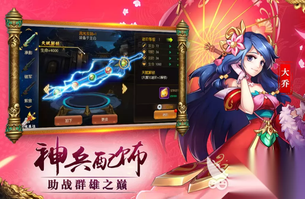 这游戏其实挺有意思的,背景就是大家熟悉的三国,但是玩法上不累人,是个卡牌策略放置游戏,平时挂挂机就能升级,这里面的武将做得挺全,吕布啊诸葛亮啊这些大咖都有,而且很多都能免费拿到,不用非得氪金,它分了四大阵营和不同的职业,你得动动脑子,根据武将的属性去搭配阵容,有时候战力低一点,只要阵容克制好,照样能把对面碾压过去,这种以弱胜强的感觉特别爽,游戏操作也不难,点点屏幕就行,适合上班摸鱼或者睡觉前玩一会儿。