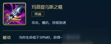 《LOL》新玛莫提乌斯之噬,提供50攻击力、50魔抗、15技能急速,由海克斯饮魔刀和考尔菲德的战锤合成,拥有救主灵刃特效。该装备移除吸血,提升了攻击力与魔抗,更契合重装战士类英雄。