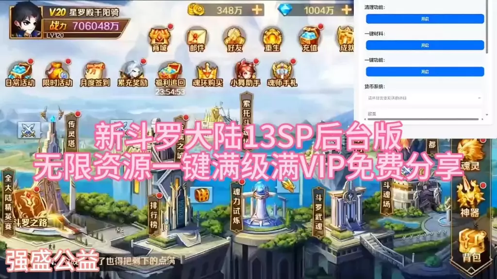这是一款《新斗罗大陆》的GM后台版本游戏,玩家可通过GM后台发放任何装备,展示了游戏内的各类SP、SRP品质的魂灵、神器等内容,战力可达432万亿,博主称其为3月必玩的26年爆款,呼吁一键三连免费分享。