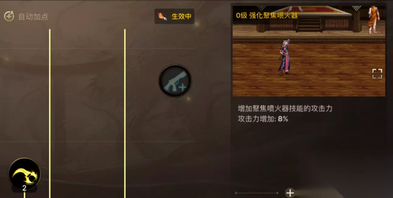 接着还有喷火器,当然15级学的虽然粗壮一些,但是伤害低距离短。然后30级学的喷火射线即可远距离喷火,而且伤害很高,还自带一定的击退控制效果。接着还有通用的格林机光枪以及BBQ,都是伤害不俗耗蓝低的技能。
