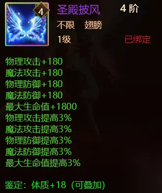 在《神曲》手游里所有的装备中,最炫酷的莫过于人物的翅膀了。要知道《神曲》里的翅膀不仅外观华丽,还能为人物带来实打实的属性加成。今天我们来简单评测一下《神曲》手游中排名最靠前的几种翅膀! 圣殿披风:这一翅膀可以说是《神曲》手游里最稀有的翅膀之一了。其不仅有着华丽的蓝白圣殿风外观,属性加成也是非常可观的。蓝白的配色给玩家的角色带来了宛如圣殿骑士一般的魔幻外观。