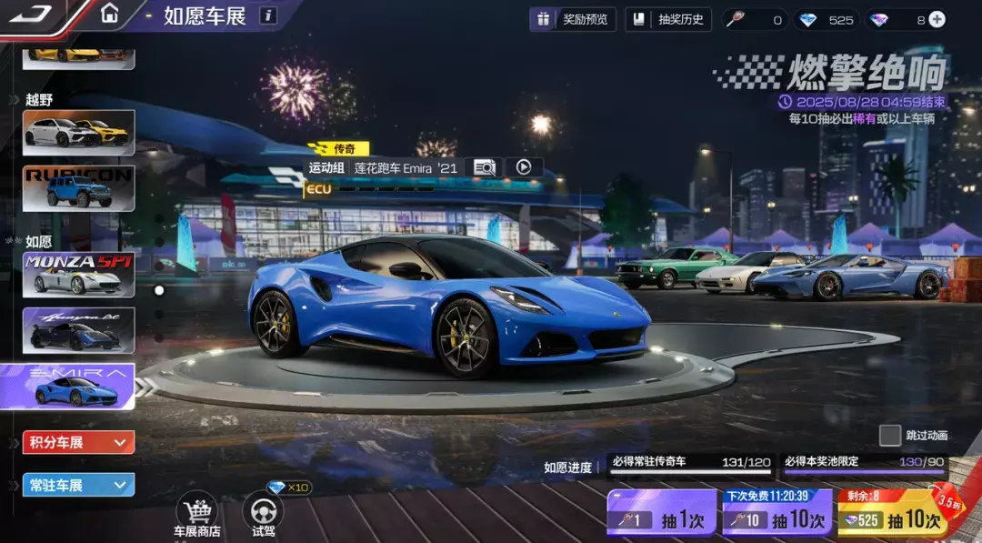 除了可以通过赛事竞猜活动积攒竞猜币免费兑换这辆梦中情车,现在游戏内的莲花跑车 Emira '21专属卡池也持续开放中!欧气爆棚的车神,说不定就能拿着小可送的福利一发入魂把它开回家~
