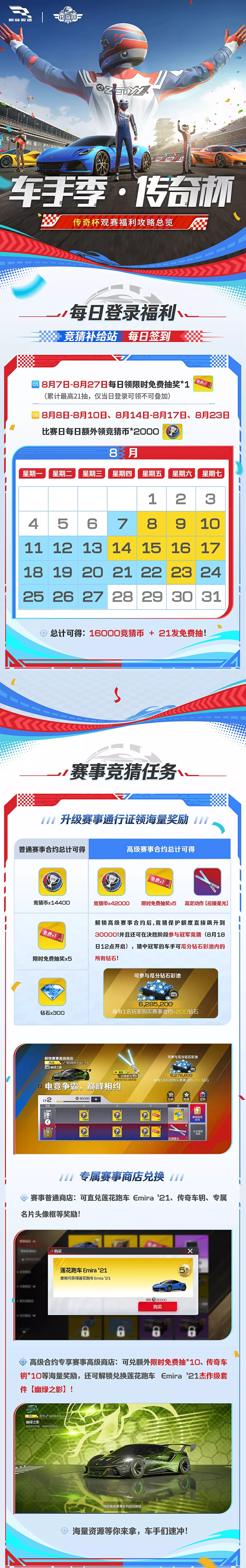 参与传奇杯期间活动,轻轻松松就能把5万+竞猜币揣进口袋,更有机会和全服小伙伴一起,把那辆闪闪发光的冠军大奖同款传奇车 莲花跑车 Emira '21直接免费兑换带回家!