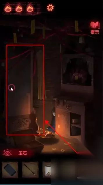 回到竖镜子所在房间,使用【玉石】砸碎镜子。
