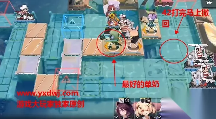 放置两个奶,撤回42 第四步: 放置单体术士和单体剑圣在下面的位置,顶住法师