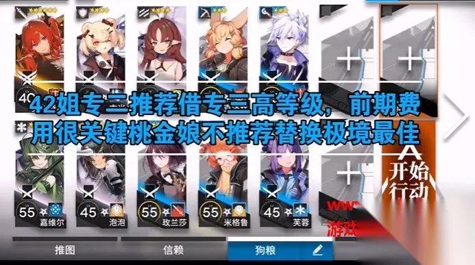 明日方舟最近推出了最新的多索雷斯夏日的全新夏活活动,在里面第一个高难度关卡DHS1想必把很多新玩家在这里就难住了,小便也给大家带来了这个关卡的低配阵容攻略,玩家们只需要租借一个单核就能够成功拿下这个关卡,小编自己也亲测可用,想要用低配阵容打过这一关的玩家就赶紧参考看看吧,具体如下: 明日方舟dh-s-1低配阵容攻略-明日方舟dhs1怎么打? 阵容如下,玩家们可以使用自己类似职责的高星级干员调整阵容: 42练度越高越好,桃金娘不推荐用极境替换,前期费用吃紧
