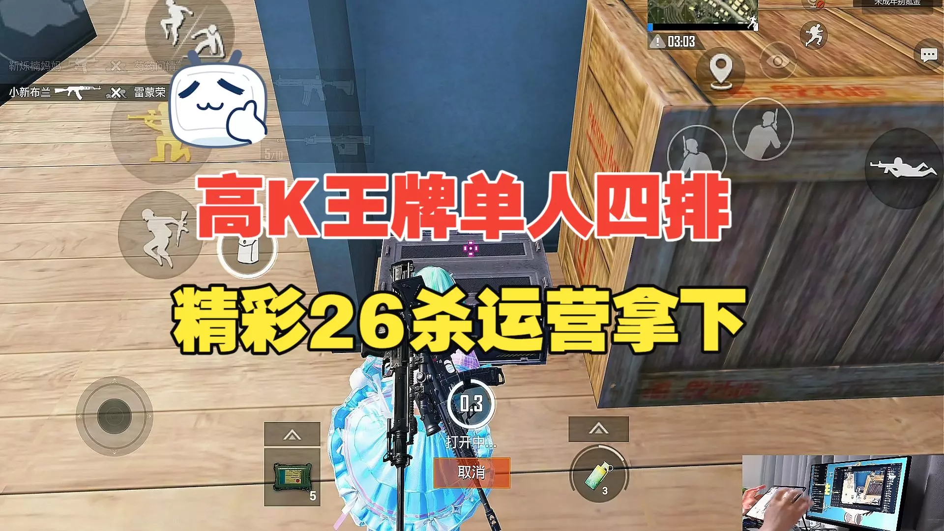 这是《和平精英》的游戏内容,展示了玩家在经典海岛地图单人4排的精彩运营过程,玩家通过驾驶载具、在集装箱区域作战等操作,已取得多场淘汰,最终达成24杀,同时送上新年祝福。