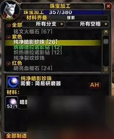 十八、351-375 使用55暗影珍珠和60清洁的德拉诺之水制造出纯净暗影珍珠升到375。